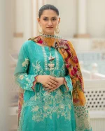 An extravagantly beautiful and bold yet intricate embroidery is bound to create a pleasing style statement for many. Featuring  net embroidery dupatta which is going to be a statement piece for your wardrobe this season.